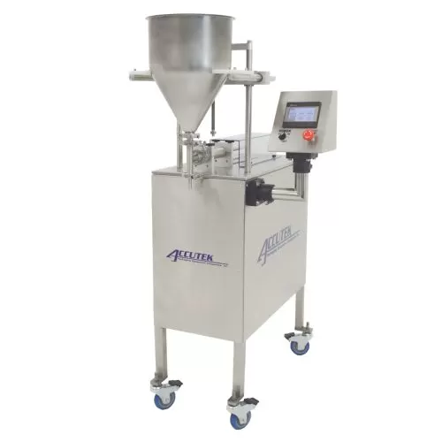 The Accutek All Electric Servo Driven Piston Filler (E-SPF) is a volumetric piston filling machine that accurately delivers a measured volume of product to each container. The accuracy of these piston filling machines ensures bottom line savings by reducing the amount of product that is used as overfill.