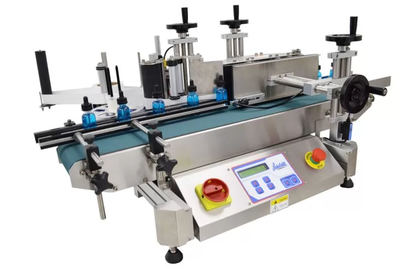 Labelette’s (Semi-Automatic Pressure Sensitive) SPS-104 Labeler is an economical and efficient labeling machine for round containers. The unit is manufactured from Stainless Steel and anodized aluminum creating a durable but portable machine.